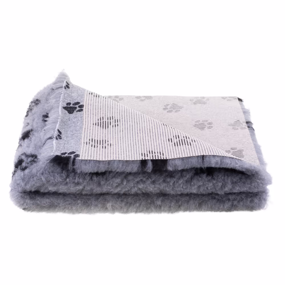 Blovi DryBed B – antypoślizgowe posłanie, legowisko dla zwierząt, szare z czarną łapką – 100x75cm