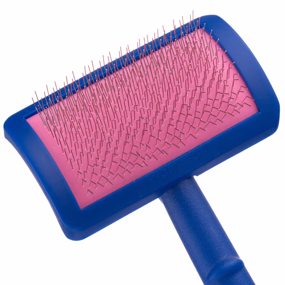 Show Tech Tuffer – szczotka pudlówka średniej wielkości, wygodnie wyprofilowana w łuk z igłami o równej długości. Unikalny kształt szczotki pozwala na wygodna pracę. Szczotka posiada twardą gumową poduszeczkę.